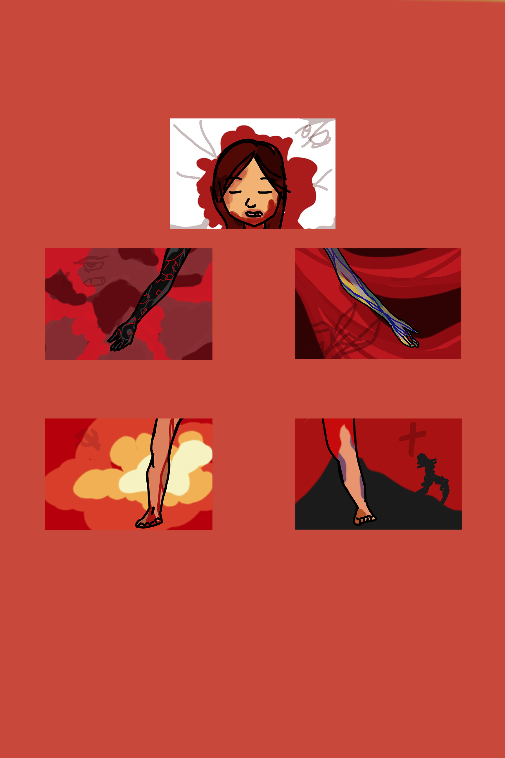 La exploración de técnicas y medios devino en la selección del maquillaje y el video como formas de expresión de una narrativa mitológica, que corresponde a mi propia representación del mito de Inkarrí presente en la novela Abril Rojo. Es mi aporte estético y artístico a las posibilidades representaciones y a las ideas reflexivas que pretenden exponerse a través de ésta; hablando del mito indígena, de nuestras raíces y la capacidad de emularse en el escenario expresado.