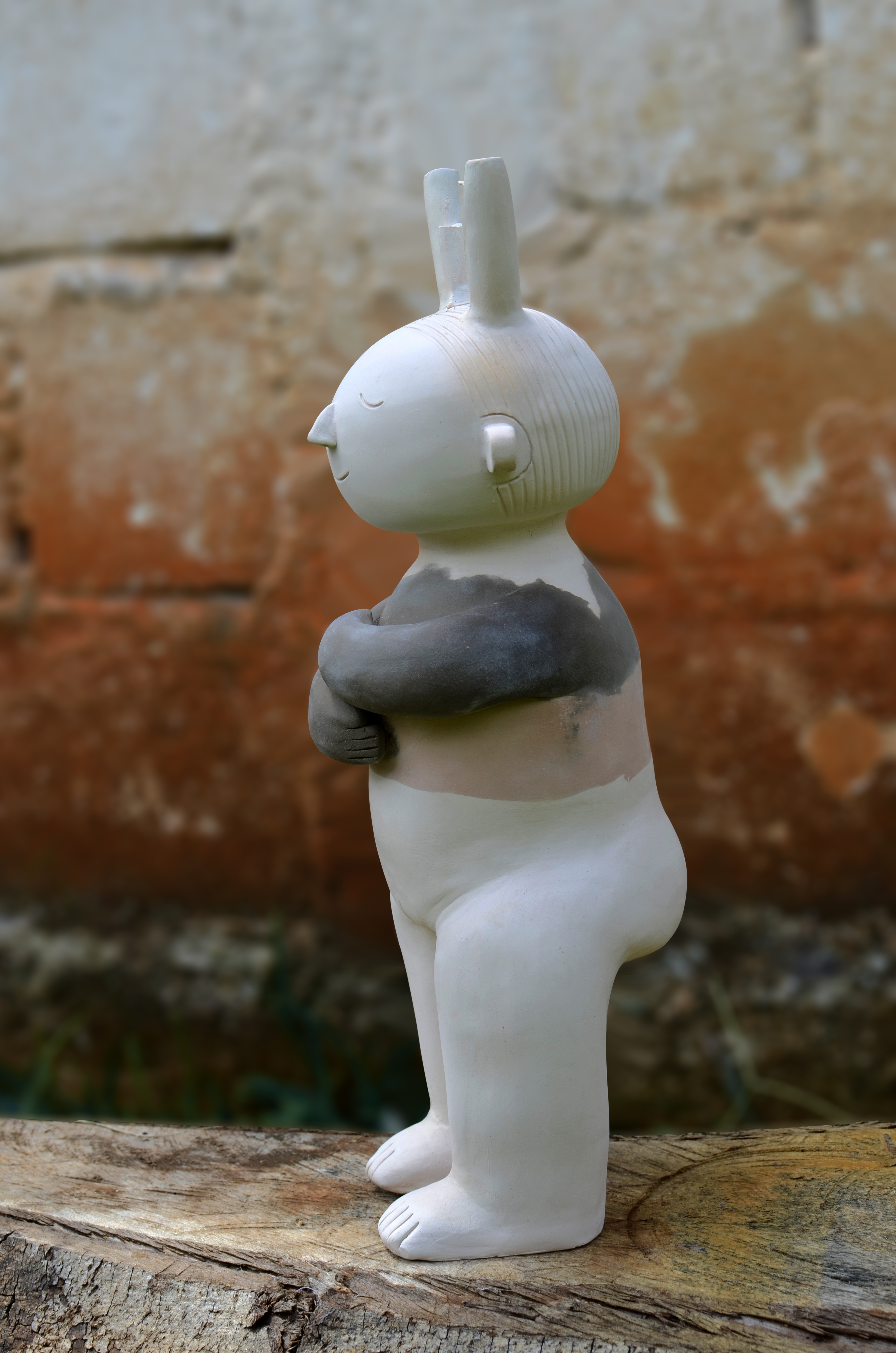 5. Por último, inicio una experimentación desde la cerámica a partir de bocetos que ilustran seis femeninas en posición sedente con apropiación de la estética de la cerámica precolombina. La materia prima (arcillas), enlaza el tema de discusión por ser uno de los oficios más antiguos y desarrollados en las primeras sociedades prehispánicas, conservándose en tiempos actuales. Un ejercicio que para este proyecto exige investigación o conocimientos previos para la elaboración. El resultado final son siete piezas en cerámica que representan realidades actuales realizadas en tonos de arcillas: rosado, chocolate y blanco; los tonos aluden a la plurietnicidad del contexto colombiano.